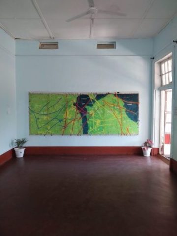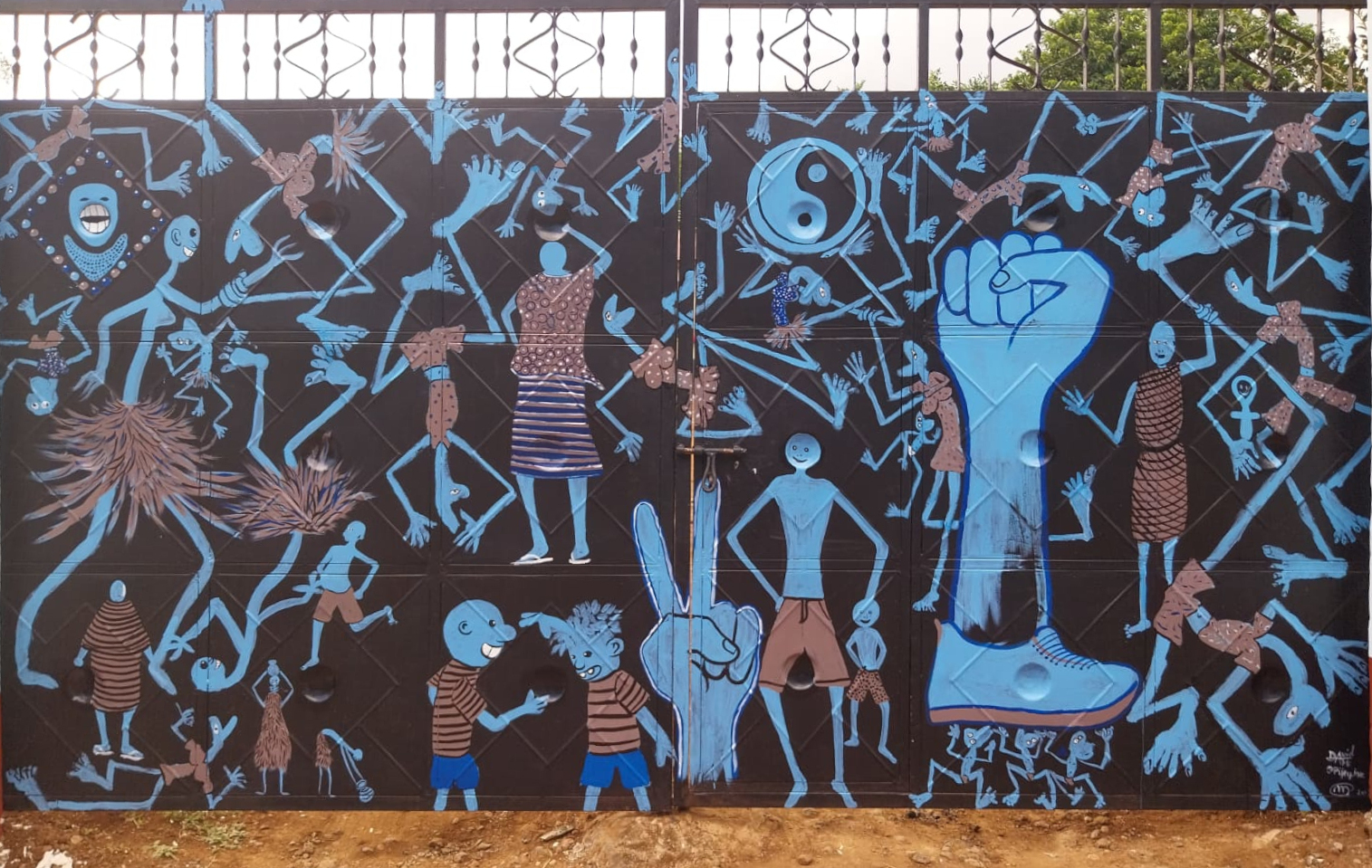 Een gezamenlijke muurschildering, oorspronkelijk gerealiseerd in Dar es Salaam, werd voor deze tentoonstelling opnieuw uitgevoerd als beschilderde toegangspoort tot het domein. Mertens realiseerde dit werk samen met de Tanzaniaanse kunstenaars David Valerian Mlay en Prince John Hugo.