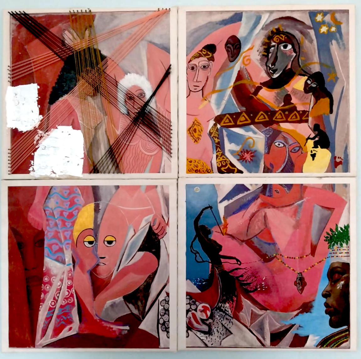 Een centraal werk in de tentoonstelling is een herinterpretatie van Les Demoiselles d’Avignon van Pablo Picasso. In het oorspronkelijke schilderij gebruikte Picasso Afrikaanse maskers binnen een modernistisch idioom. In een eerste versie voor de Biënnale van Oost-Afrika maakten Mertens, Ricardo Brey, Mulugeta Tafesse en Willo Gonnissen een symbolische ingreep om deze toegeëigende beeldtaal terug te geven aan Afrika. In Moshi realiseerden vier Tanzaniaanse kunstenaars een nieuwe versie van dit werk, aangevuld met werk uit hun eigen oeuvre.